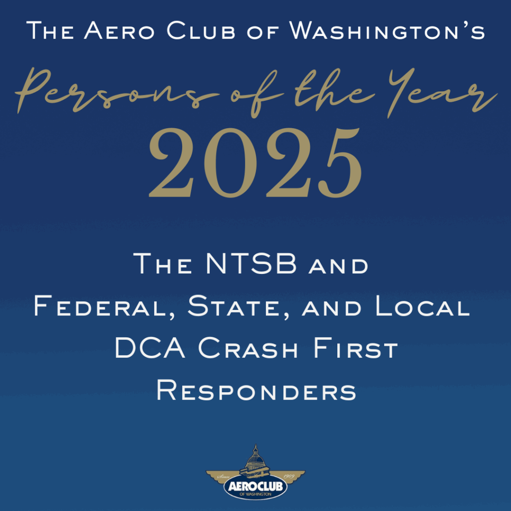 Washington, DC – The Aero Club of Washington proudly recognizes the National Transportation Safety Board (NTSB) and the dedicated federal, state, and local first responders who led the emergency response during the January 29, 2025 midair collision at Ronald Reagan Washington National Airport (DCA), naming them the 2025 Persons of the Year.