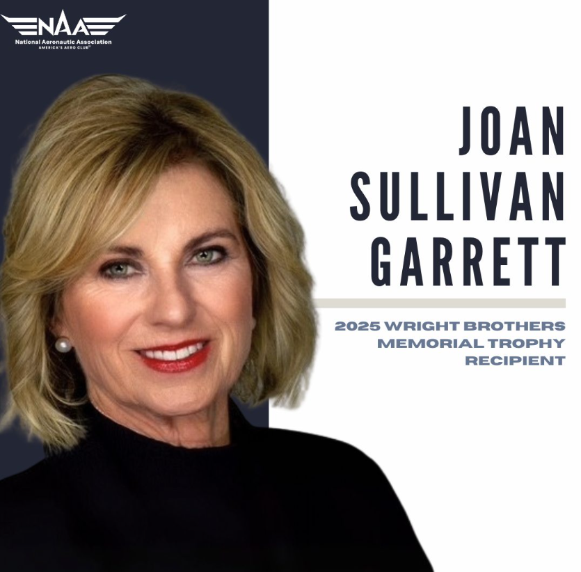 WASHINGTON, D.C. – June 26, 2025 – The National Aeronautic Association (NAA) announced today that Joan Sullivan Garrett has been selected to receive the 2025 Wright Brothers Memorial Trophy for her pioneering work in aviation telemedicine.