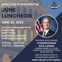 Refund Policy: Refund requests will be approved up to one week prior to the event. After June 3rd, refunds will not be issued. Tickets are not transferrable to future Aero Club luncheons.